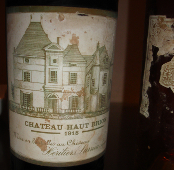Haut-Brion 1918, star de la soirée. A droite, lambeaux de l’étiquette du Filhot 1935 - Richebourg, domaine Gros Frères 1987