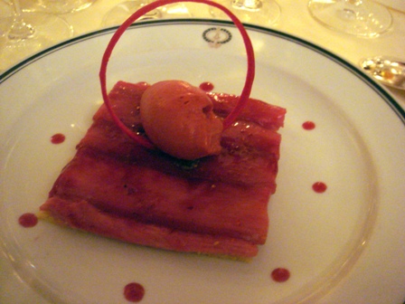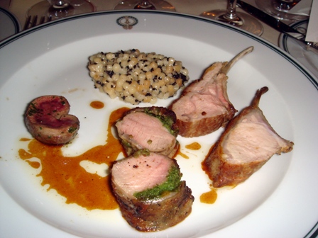 Le meilleur plat, c’est ce carré d’agneau de lait et le traitement de la rhubarbe est parfait.