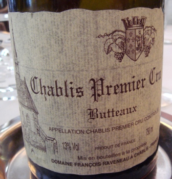 Elle est remarquablement exécutée. Le vin que j’ai choisi dans la carte des vins intelligente est un Chablis Premier Cru Butteaux Domaine François Raveneau 2004. Le vin servi à température de cave est très épanoui. La couleur est belle et intense, le nez est extrêmement discret. En bouche, le miel est onctueux, le vin solide, emplissant la bouche d’une belle joie. On se sent bien avec ce chablis qui s’exprime plus en bourgogne qu’en chablis.