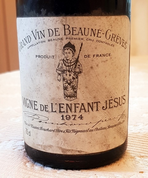 J’avais ouvert à 17 heures un Beaune Grèves Vigne de l’Enfant Jésus Bouchard Père & Fils 1974 de l’année de ma fille, acheté en pensant à elle. Le vin a un niveau à moins d’un centimètre sous le bouchon. Le bouchon se craquèle à la remontée mais vient entier. Le nez à l’ouverture était divin, expression bourguignonne subtile, racée, toute en suggestion. Au moment où je verse le vin, le parfum a gagné en puissance mais a toujours cette subtilité énigmatique de la Bourgogne. Il y a des intonations qui ressemblent à celles des vins du domaine de la Romanée Conti, tant le récit bourguignon est authentique. Il manque un peu de volume à ce vin pour qu’il exprime du velours, mais on n’en est pas loin. C’est un vin qui me séduit car il a toutes les subtilités des années discrètes. 1974 montre une fois de plus que c’est une année qui, en Bourgogne, se révèle d’une immense subtilité. Je suis très heureux que ce vin qui n’est pas tonitruant mais pianote ses subtilités soit d’une si grande précision. Il y a une profondeur dans ce vin que je n’aurais jamais attendue à ce niveau. Sa longueur défie les annales pour ce millésime.