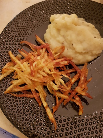C’est l’anniversaire de ma fille cadette ou du moins les préliminaires de son anniversaire car nous le fêterons à nouveau quand mon fils venant de Miami sera présent. Ma femme a prévu des choses simples. A l’apéritif, une mimolette un peu âgée et une tarte aux oignons avec des tranches de fromage de chèvre qui donnent à la tarte, à la cuisson, l’image de la planète du petit Prince. Les tranches rondes sont comme des pustules évoquant les volcans de la planète de Saint-Exupéry. Il y aura ensuite deux poulets accompagnés d’une purée et de fausses frites, fines tranches de pommes de terre délicieuses et croquantes, puis des fromages.