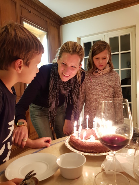 Le dîner se poursuit avec une reine de Saba qui porte les bougies de circonstance et par une mousse au chocolat traditionnelle pour les anniversaires. Le vin et le champagne ont correspondu à mes attentes.