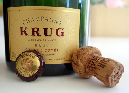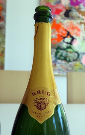 Le champagne qui suit est un Champagne Krug Grande Cuvée que je dois avoir depuis quelques années en cave. On est dans le confort et la noblesse. La gamme de saveurs est large, le vin est vif, racé, noble. C’est un grand champagne qui n’atteint cependant pas le niveau du Krug 1996 qui m’a tant impressionné. Nous avons grignoté les viennoiseries de mon épouse, des petites tranches de jambon roulées autour d’un fromage de chèvre, une délicieuse poutargue de Sète, des olives. Le Krug est divin sur la poutargue bien moelleuse. Mes amis ont préféré la lisibilité de l’Enchanteleur alors que j’ai été plus sensible au Krug, champagne de haute race.