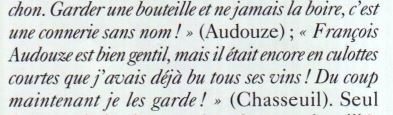L’argument cité par Chasseuil selon lequel ayant bu déjà tous les grands vins il peut se permettre de laisser mourir ceux qui restent est absolument stupide. Rien ne justifie de laisser mourir des trésors gustatifs.