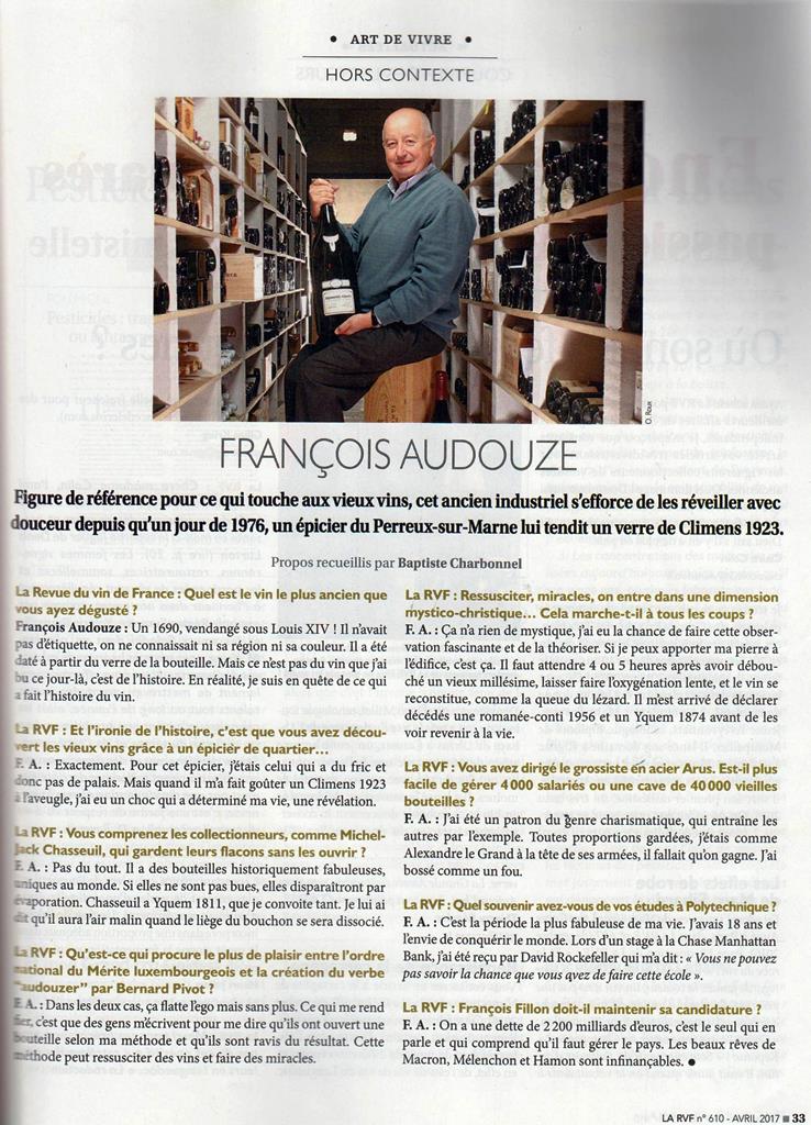 Article Revue du Vin de Francejeudi, 23 mars 2017 Dans revue du vin de France (RVF) d’avril 2017, n° 610, Baptiste Charbonnel m’a interviewé. C’est en page 33.