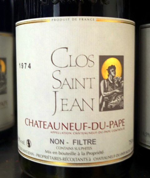 Le Châteauneuf-du-Pape Clos Saint-Jean rouge 1974 a une couleur assez sombre. Le nez est incertain, un peu médicinal. C’est un vin non éraflé. Il est très riche. Au début il n’est pas très agréable, et offre des notes de chocolat. Alors que j’aurais tendance à critiquer ce vin j’ai été surpris de constater à quel point il plait aux participants, ce qui est une bonne chose, car cela veut dire que les présents ont accepté d’intégrer les signes d’évolution.