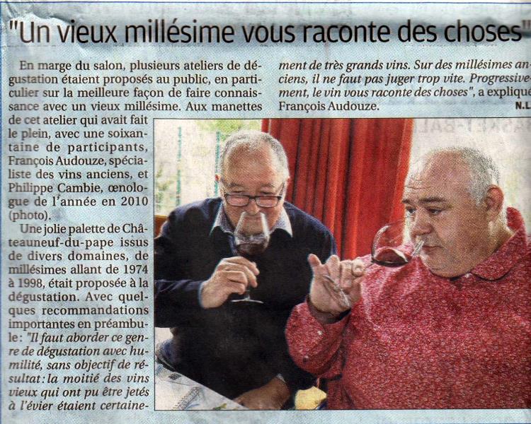 Les échos qui me sont revenus de diverses sources montrent à quel point les amateurs sont désireux d’approcher des vins plus anciens que ceux qu’ils ont pu déguster aux stands des vignerons. Cet atelier a donc sa pleine justification.