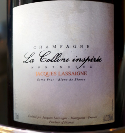 Je demande à nouveau la liste des vins pour commander autre chose et je choisis un champagne 2002 d’Agrapart. Le même maître d’hôtel revient et me dit qu’il n’a pas ce champagne. Ça commence à m’agacer, car à quoi sert une carte des vins si les articles manquants ne sont pas enlevés ? Je commande alors Champagne La Colline Inspirée Jacques Lassaigne extra-brut blanc de blancs sans année.