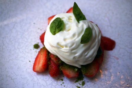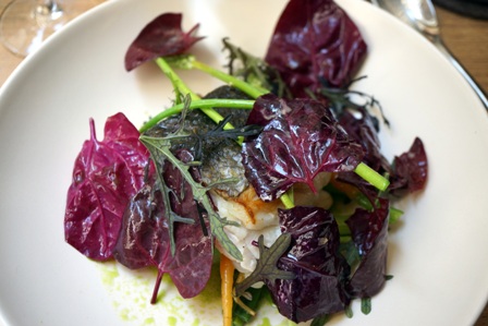 Le menu que nous avons pris est : tourteau, gaspacho de cerise à l’huile d’olive, radis / merlu de ligne, petits pois, fenouil, l’arroche pourpre / fraise, yaourt de brebis, oseille.