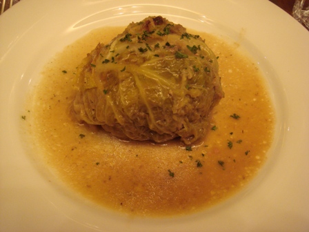 De nombreux vins sont disponibles au verre et je commence par un Condrieu Guigal 2006. Riche, légèrement fumé, ce vin emplit la bouche avec bonheur. Le Pernand-Vergelesses domaine Françoise Jeanniard 2005 qui suit est handicapé par le passage après le puissant Condrieu. Au contraire, le Chateauneuf-du-Pape Clos de l’Oratoire des Papes 2005 a une aisance et une présence qui sont joyeuses. Ce vin est agréable à boire et contrairement à l’idée que je m’étais faite, il est meilleur sur le chou farci que le Condrieu que je goûte à nouveau. On ira dans ce sympathique bistrot pour le choix de vins qu’il faudra étoffer, pour une cuisine simple, mais surtout pour l’accueil charmant de cette équipe dynamique et souriante. C’est rue Saint-Charles dans le 15ème arrondissement de Paris.