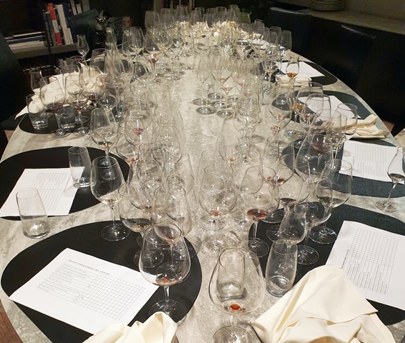 Il est temps de voter. Nous sommes cinq à voter pour nos cinq préférés de sept vins. Trois vins ont été nommés premiers, le Rota 1858 trois fois, le Dom Pérignon 1973 une fois et le Corton 1919 une fois.