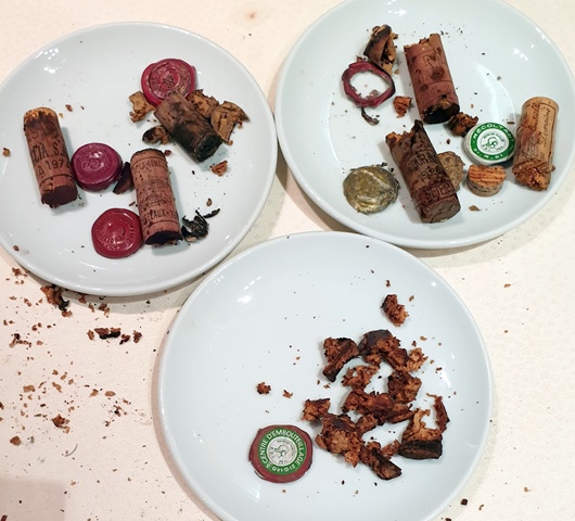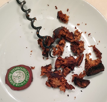 Je commence les ouvertures des vins à partir de 17 heures car Matthieu, le sommelier du restaurant, m’a déconseillé de venir à 16 heures du fait que des clients du service du midi risquaient d’être encore présents. Tous les bouchons sont venus entiers ou avec de faibles brisures. Est-ce un effet des conditions atmosphériques d’avoir des comportements de bouchons qui se ressemblent, c’est une énigme que je vais essayer de résoudre par l’expérience.