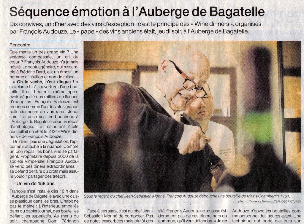 J’avais demandé à chacun d’apporter un grand vin et l’un des amis avait livré nos bouteilles une semaine avant. Didier Depond a accepté d’ouvrir nos vins aux aurores.