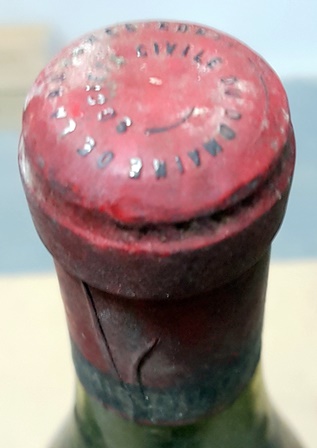 bouchons du Corton Grancey 1928 (à droite) et du Clos Vougeot 1955 (à gauche)