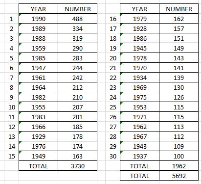 I have made a study of what I drink for the last 20 years, because I have a data base on that, for 16285 wines drunk. I chose a criteria of age which is : drunk when the wine has less than 20 years, or when the wine has 20 years or more. It is not a study on millesimes, but a study on age of consumption. To understand well what it means, let us take the year 1990. The wines of 1990 that I drank on the period 2000 – 2009 are in the category ‘less than 20 years’ and the wines of 1990 that I drank on the period 2010 – 2020 are in the category ’20 years or more’.
