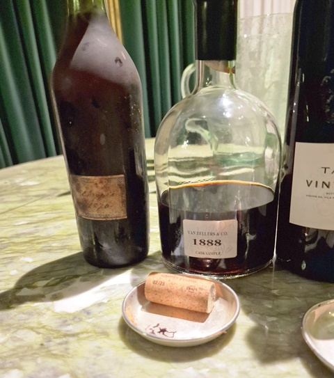 Mes notes s’arrêtent là car arrivent deux vins gigantesques. Le premier est le Champagne Krug Grande Cuvée étiquette olive (qui est la première) que j’ai apporté. A l’ouverture, le vin a fait un joli pschitt. Le bouchon portant un numéro 38 la maison Krug a put retrouver qu’il s’agit de la 140ème édition issu de la vendange 1984 et qui a reçu son bouchon en 1988. Ce vin a une rondeur extrême et il montre à quel point le temps forge les grands vins.