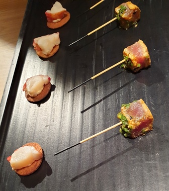 Après les ouvertures, je vais prendre une bière à la brasserie 116 et je grignote des édamamés. Juste avant que l’équipe de cuisine ne prenne leur dîner, je leur offre de goûter le Champagne Dom Pérignon 1983 que j’avais apporté au Pavyllon et dont il restait une belle moitié. Ils ont apprécié la noblesse de ce champagne.