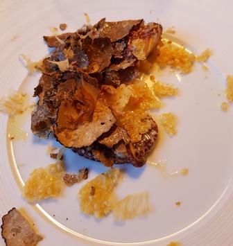 Le plat de poulpe participe à la renommée de Valérie car ce plat qu’elle adore faire est gourmand et construit. Beaucoup d’amateurs se demandent comment le poulpe peut être aussi bon. Il faut dire aussi que la truffe est abondante et cette truffe d’automne est diablement goûteuse et longue en bouche.
