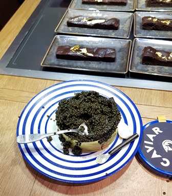 Sans nul doute le dessert a la prime de l’audace et de l’originalité, et le poulpe a la prime de la gourmandise. Pendant ce repas, l’imposante boîte de caviar circulait autour de la table. Avec du pain et du beurre, le caviar exprime toutes ses qualités.