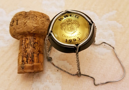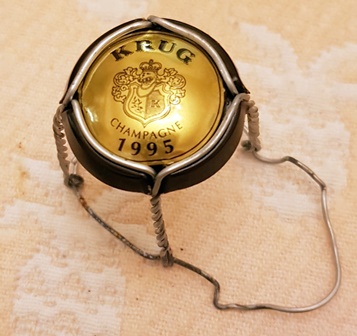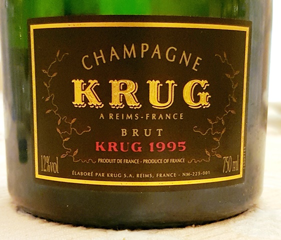 Comme cela arrive souvent, nous avons fait, mon fils et moi, vœu de chasteté vinique pour un soir et ma femme en tient compte dans son menu : soupe aux lentilles et lard / omelette / salade verte. Jusque-là, tout va bien. Mais très vite le besoin d’un champagne éclot et mon choix se porte sur un Champagne Krug 1995. Contrairement au Dom Pérignon de la veille, le bouchon résiste au point que je suis obligé de prendre un casse-noix pour pouvoir faire tourner le bouchon collé au verre. Le pschitt est fort. La bulle est très active. La couleur est délicatement dorée. Ce champagne est noble et s’installe dès la première gorgée dans les hautes sphères de la hiérarchie. Il est racé, élégant et tout sauf canaille. Car il est rigoriste et archétypal. Il est plus gentleman anglais que crooner américain. C’est un très noble champagne qui va s’épanouir si on le laisse tranquille pendant une bonne décennie. Les fromages sont venus à la rescousse pour qu’un accord se crée. Une fois de plus c’est un plaisir de partager des vins avec mon fils.