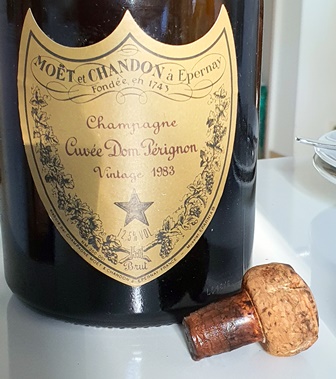 Pour mon anniversaire j’ouvre un Champagne Dom Pérignon 1983. De jolie couleur, avec un pétillant marqué, ce champagne n’est que du bonheur, ample, joyeux et racé. Un fromage de tête crée un accord parfait et une petite soupe à la fraise l’accueille gentiment.
