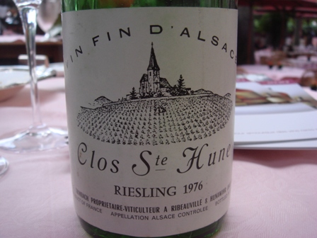 I arrive first, and I ask Ghislain to prepare a Riesling Clos Sainte Hune Trimbach 1976, a year that I specially love, and we will choose the other wine with the menu.