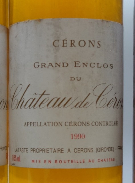 Le Grand Enclos de Château de Cérons, Cérons 1990 est d’une couleur très claire. Il a du gras, de l’ampleur et montre que 25 ans déjà arrondissent les vins liquoreux.