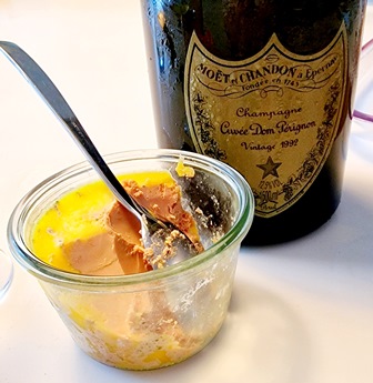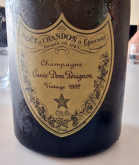 Chers amis qui mangez du foie gras au Sauternes, oubliez cette idée. Le foie gras est fait pour le champagne. Et le Dom Pérignon 1992 accompagne parfaitement le foie gras. Le format de magnum préserve la jeunesse de ce beau champagne