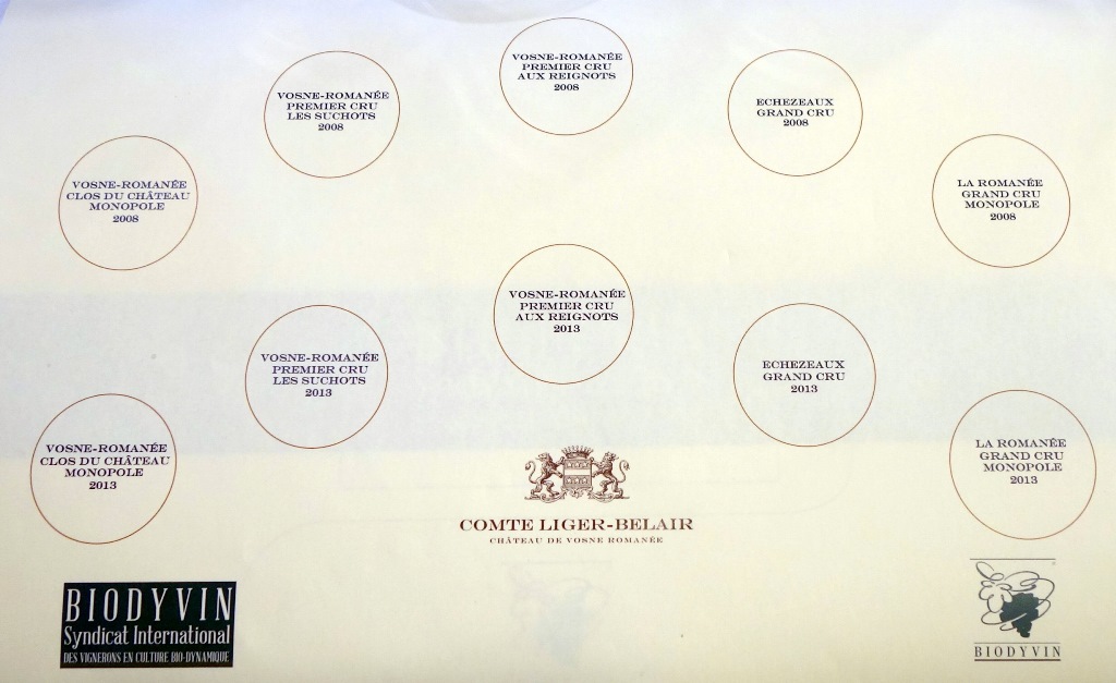 Le syndicat international des vignerons en culture biodynamique (SIVCBD) tient salon sous le nom BIODYVIN dans des salons de l’hôtel Intercontinental Opéra. Soixante vignerons ont chacun un stand, de toutes les régions de France. Ce qui m’intéresse plus particulièrement c’est une dégustation en petit comité, une quinzaine de personnes, de vins du domaine Comte Liger-Belair. C’est Louis-Michel Liger-Belair lui-même qui m’a demandé d’y assister, honneur que j’apprécie.