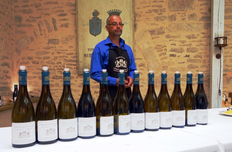 Ce qui nous attend maintenant, c’est un concert dans la cave de la salle des fêtes de Vosne-Romanée, puis un dîner préparé par Pascal Barbot au château de Vosne-Romanée, demeure du Comte Liger-Belair.