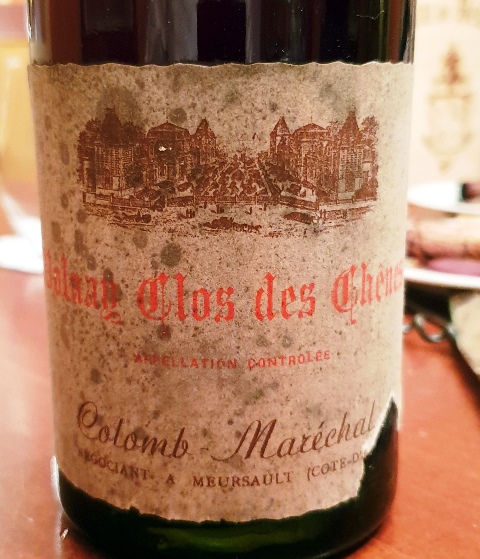 Le Volnay Clos des Chênes Colomb Maréchal 1961 a un joli nez mais en bouche le vin n’est pas très net. Je suis incapable de le situer.