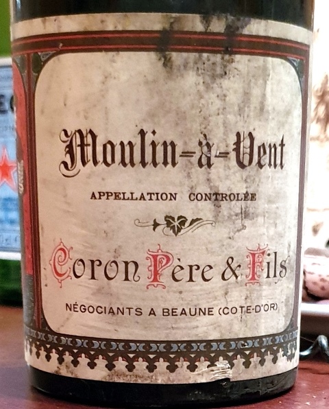 Le Moulin à Vent Coron Père & Fils 1964 a un nez un peu imprécis. La bouche est généreuse, mais on peut supposer que le vin a lui aussi souffert d’un coup de chaleur, ce qui attriste certains vignerons qui ont le souvenir de beaujolais merveilleux bus dans les ateliers précédents. Le vin est un peu torréfié.