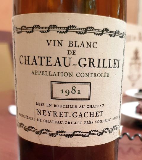 Georges ne veut pas servir le Château Grillet 1981 qu’il annonce fortement bouchonné. Je lui demande de le goûter mais il ne veut pas, craignant que cela abîme la dégustation des vins qui suivent. On verra plus loin que les résurrections existent.