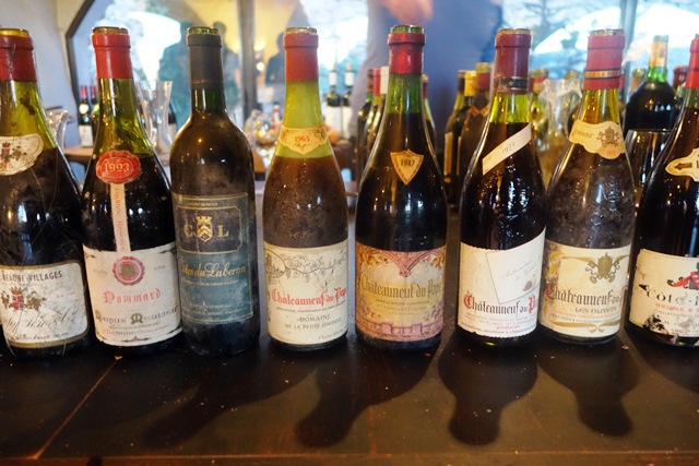 les vins y compris ceux du dîner (en arrière plan sur la table)