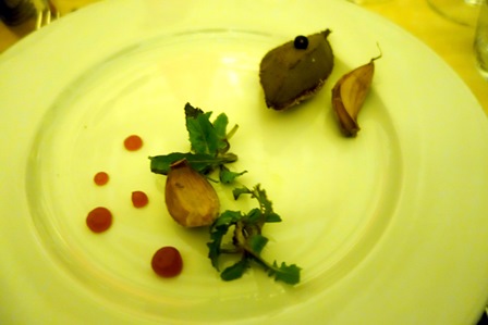 Le menu conçu par Edouard Loubet est remarquablement exécuté pour cette foule immense. Il y a des petits oiseaux accompagnés de tartines de crèmes d’abats et d’aulx, puis une pièce de cerf très généreuse, un fromage de chèvre frais et un dessert au chocolat accompagné de Rasteau et de vins mutés des participants dont un du domaine Delubac fait de grains de raisins abandonnés quinze ans dans un fût de chêne. Une petite merveille.
