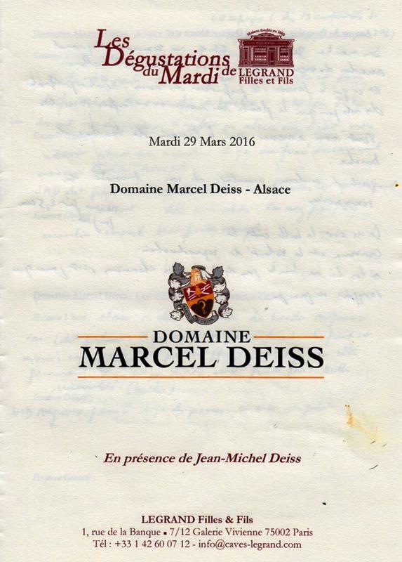 Les Dégustations du mardi des Caves Legrand donnent l’occasion de rencontrer des vignerons qui parlent avec cœur de leurs vins. Ce sont des rencontres inoubliables. Ce soir c’est Jean-Michel Deiss qui parle de ses vins et pour rien au monde je n’aurais manqué cette occasion de l’entendre.