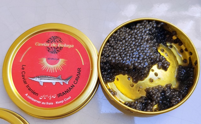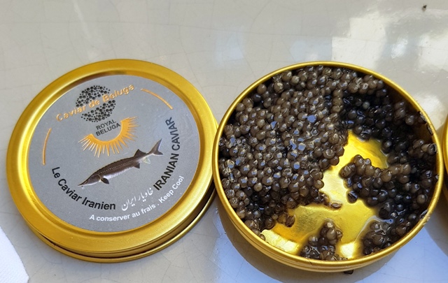A l’initiative de Christopher, nous goûtons trois caviars iraniens d’une maison qui s’appelle « Caviar de Beluga ». Le Beluga se présente assez gras, opulent, de belle longueur. Il est d’un grand charme. Le Royal Beluga est plus vif, plus profond et je l’aime encore plus sachant que ces deux versions sont parfaites et radicalement différentes. Le Sévruga au grain plus petit me plait beaucoup moins. Mais si j’avais commencé par celui-ci, il est certain que je l’aurais aimé, car ce caviar iranien est grand mais moins que les deux Belugas. Sur les trois caviars le champagne est délicieusement titillé et devient beaucoup plus complexe.