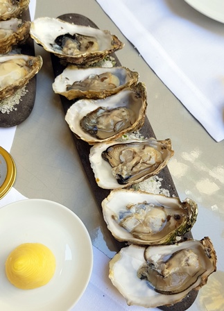 Dans la brasserie un jeune homme joue le rôle d’écailler mais pas seulement. Il m’avait fait l’article sur les huîtres qu’il présente et nous allons essayer deux huîtres numéro 3, une grasse et une maigre. Ma femme adore les grasses et j’adore les maigres. Il faudra que je l’invite en ce lieu car les huîtres sont de toute première qualité. Et c’est la grasse qui me paraît la plus goûteuse, avec une longueur en bouche que je n’ai sans doute jamais rencontrée à ce niveau. Le champagne brille encore plus.