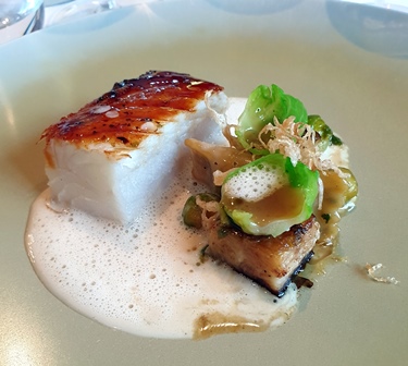 Que dire du repas ? Une chose ne trompe pas. Les blettes sont accompagnées de trois biscuits de seigle. J’ai voulu les mettre de côté pour goûter le plat sans eux. Et je me suis aperçu qu’ils sont indispensables. C’est donc une cuisine élégante, sans heurt gustatif, où tout est cohérent. J’y ajouterai que c’est la cuisine d’un homme heureux, car une cuisine aussi mesurée et accomplie ne peut être que l’œuvre d’un homme heureux. Par goût personnel c’est l’anguille que j’ai adorée, parce que j’aime ce poisson qui accepte les vins rouges, mais tout mérite les plus grands compliments.