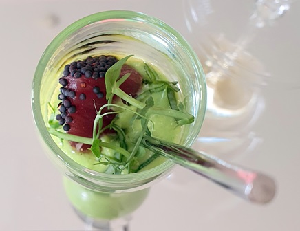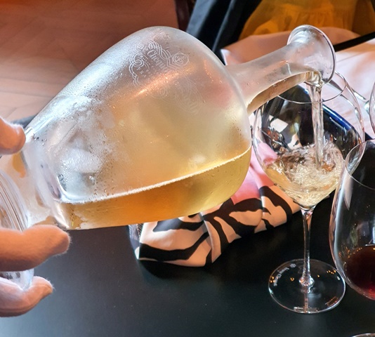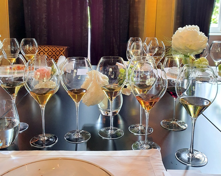 L’apéritif se prend avec le Champagne Veuve Clicquot La Grande Dame 2012. Il a une belle énergie et se boit bien, indiquant une année très équilibrée.