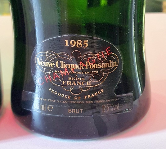 L’esprit étant à la générosité débridée, Didier Mariotti qui était obligé de nous quitter et n’a pas participé aux votes a fait chercher pour nous un Champagne Veuve Clicquot La Grande Dame 1985 qui confirme que l’année 1985 est en ce moment une année exceptionnelle. C’est un champagne de sérénité et d’ouverture sur une palette de goûts exceptionnelle.