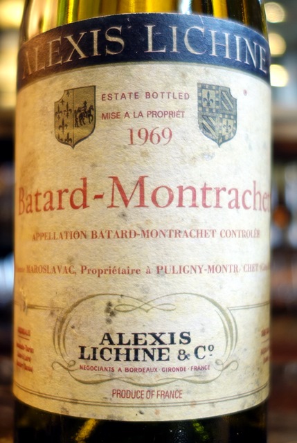 Mon correspondant inconnu autrement que par mails a apporté un Bâtard-Montrachet Etienne Maroslavac Propriétaire 1969 embouteillé par Alexis Lichine. La couleur du vin est extrêmement jeune d’un blé très blond. Le vin a une belle acidité citronnée, signe de jeunesse. Il a un joli gras. Il y a un peu de cire d’abeille mais qui n’est pas gênante. Le vin est très plaisant.