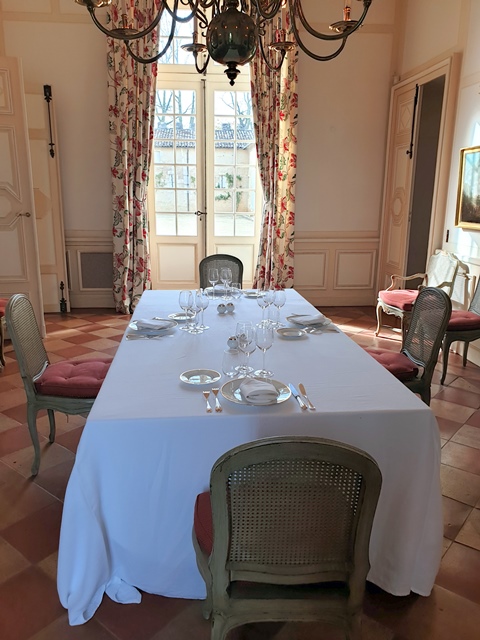 A midi nous nous présentons au château. Valérie, la collaboratrice précieuse du président d’Yquem qui assistait Alexandre de Lur Saluces et maintenant Pierre Lurton sera présente au déjeuner traditionnel qui précède mes dîners en ce lieu, alors que Sandrine Garbay et Francis Mayeur, qui font Yquem et ont assisté aux précédents repas ne seront pas là, retenus par d’autres obligations. Nous serons donc quatre à tester des plats du dîner que j’ai mis au point sur le papier il y a deux mois avec Olivier Brulard, le chef du château, meilleur ouvrier de France (MOF) 1996 qui a fait ses armes notamment avec Michel Guérard.
