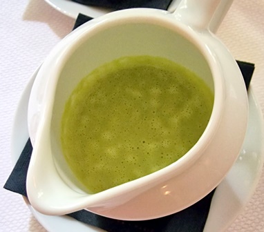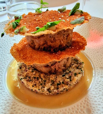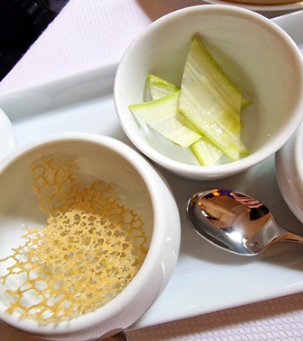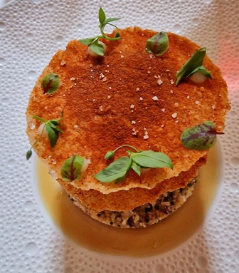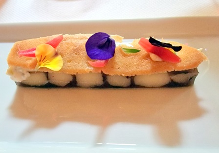 Je commande des asperges vertes de Mallemort, mimosa au caviar golden, velouté Argenteuil et l’agneau de lait, épaule confite au paprika fumé, semoule de chou-fleur et jus corsé. Pour les asperges je demande que tous les accompagnements soient mis de côté car les asperges seules se marieront au vin et c’est le cas. J’adore l’amertume des asperges avec un vin jeune. Par curiosité, j’ai essayé le caviar délicieux et bien gras avec le vin rouge et à ma grande surprise, l’accord se trouve. Cela me donnera envie d’explorer des accords vin rouge jeune et caviar, ce qui est loin d’être évident.