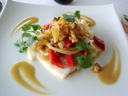 Deux plats très épicés. Les cuisses de grenouille sont délicieuses. Quant au plat de bar, dommage qu’il soit perdu dans une imposante montagne de saveurs très typées.