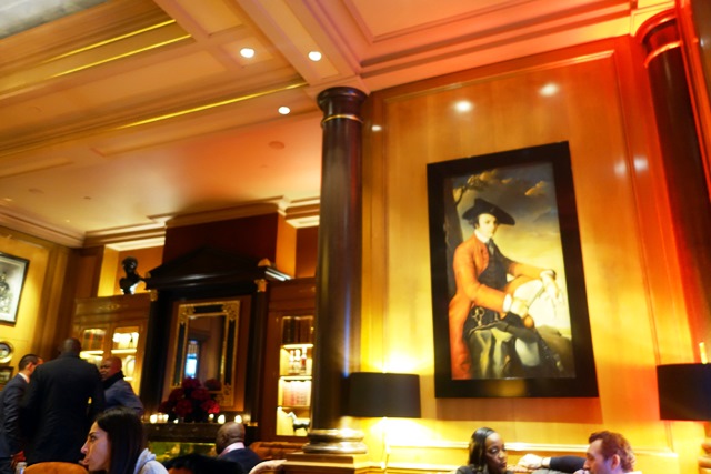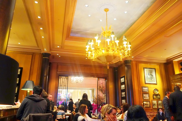 J’ai rendez-vous ensuite au bar de l’hôtel George V avec un organisateur de grands dîners. Le bar est fréquenté par une population très bigarrée de toutes origines. La décoration est riche et les fleurs sont belles. On nous propose un Champagne Amour de Deutz 2006 qui manque d’équilibre et n’a pas atteint la sérénité du Comtes de Champagne de la même année. Le George V a probablement l’atmosphère luxueuse la plus sympathique de tous les palaces parisiens.