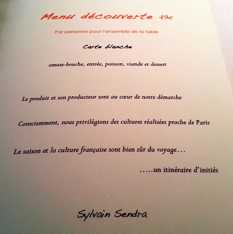 Déjeuner de famille organisé par ma sœur au restaurant Itinéraires. Nous prenons le menu dégustation du chef Sylvain Sendra avec une jolie composition sur l’huître et des légumes verts, un œuf mollet, un beau rouget, une viande rosée et lardée sur des variations de carottes, un intelligent plateau de fromages et une ganache au chocolat. La cuisine est délicate, raffinée, intelligemment exécutée. C’est un peu agaçant quand on vous énonce les fournisseurs de carottes, de courgettes, d’œuf et de toutes choses, mais c’est très tendance et ça démontre la recherche des meilleurs produits.