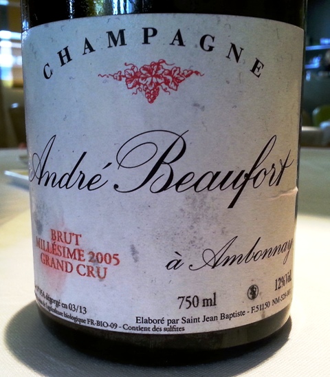 Le Champagne André Beaufort à Ambonnay 2005 me rebute un peu au premier contact car il manque un peu de rythme, mais il se transforme complètement sur la nourriture, devenant très accueillant et agréable à boire.