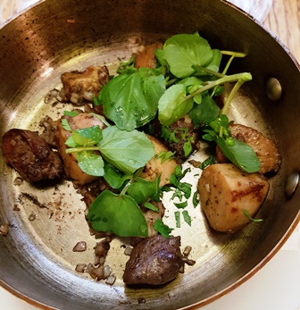 Déjeuner au restaurant La Bourse et la Vie. Le bistrot est d’un style classique et comme je suis en avance, je demande la carte des vins. Mon œil est attiré par un vin qui à lui tout seul vaut le voyage. Je demande qu’il soit ouvert tout de suite et en attendant, je commande une coupe de Champagne Bérêche Brut. Le champagne est agréable, de belle vivacité, mais il a été dégorgé en juillet 2017 ce qui lui donne une verdeur qui disparaîtra dans quelques mois.