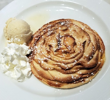 Le vin s’accorde naturellement avec les plats que j’ai choisis. Une tarte fine aux pommes conclut le repas. Je vais ensuite bavarder avec des habitués que je connais. Venir déjeuner à La Cagouille est une tradition que j’apprécie.
